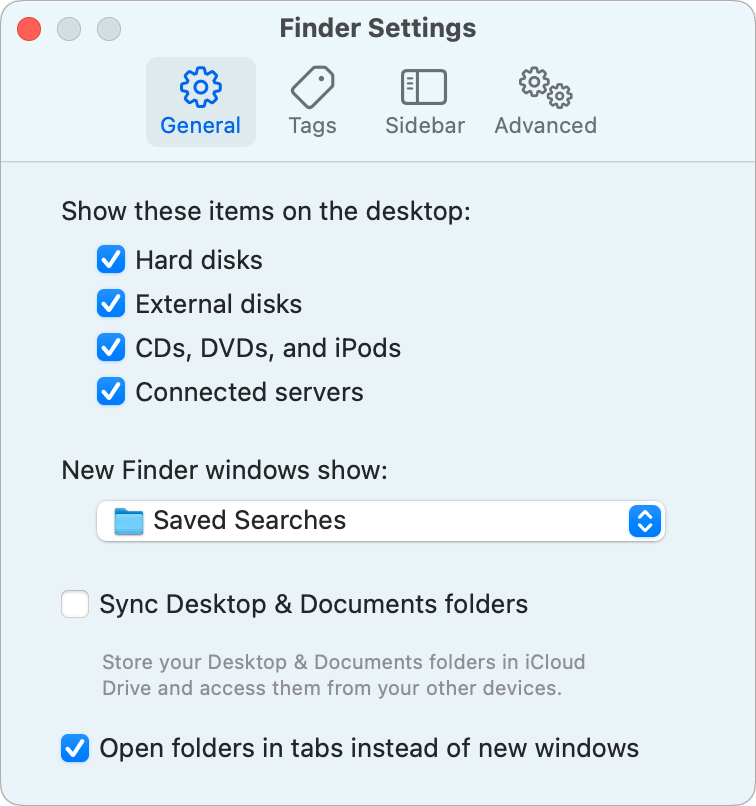 - Via the Finder setting in Finder > Settings in the General tab labeled “Open folders in tabs instead of new windows.”