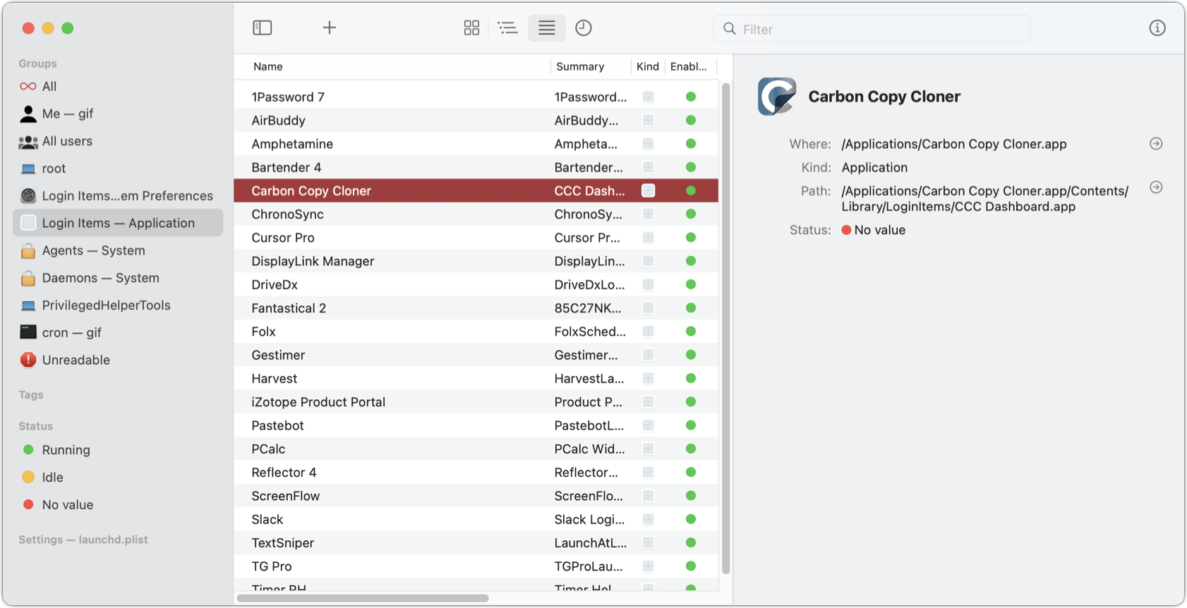 With View > List chosen, you can browse lists and find items associated with software you thought you stopped using or uninstalled years ago. One of the most common hidden causes of poor system performance, crashes, and unexpected disk operations are agents and similar items that restart themselves constantly after failing because they contain outdated code, but macOS keeps relaunching them.